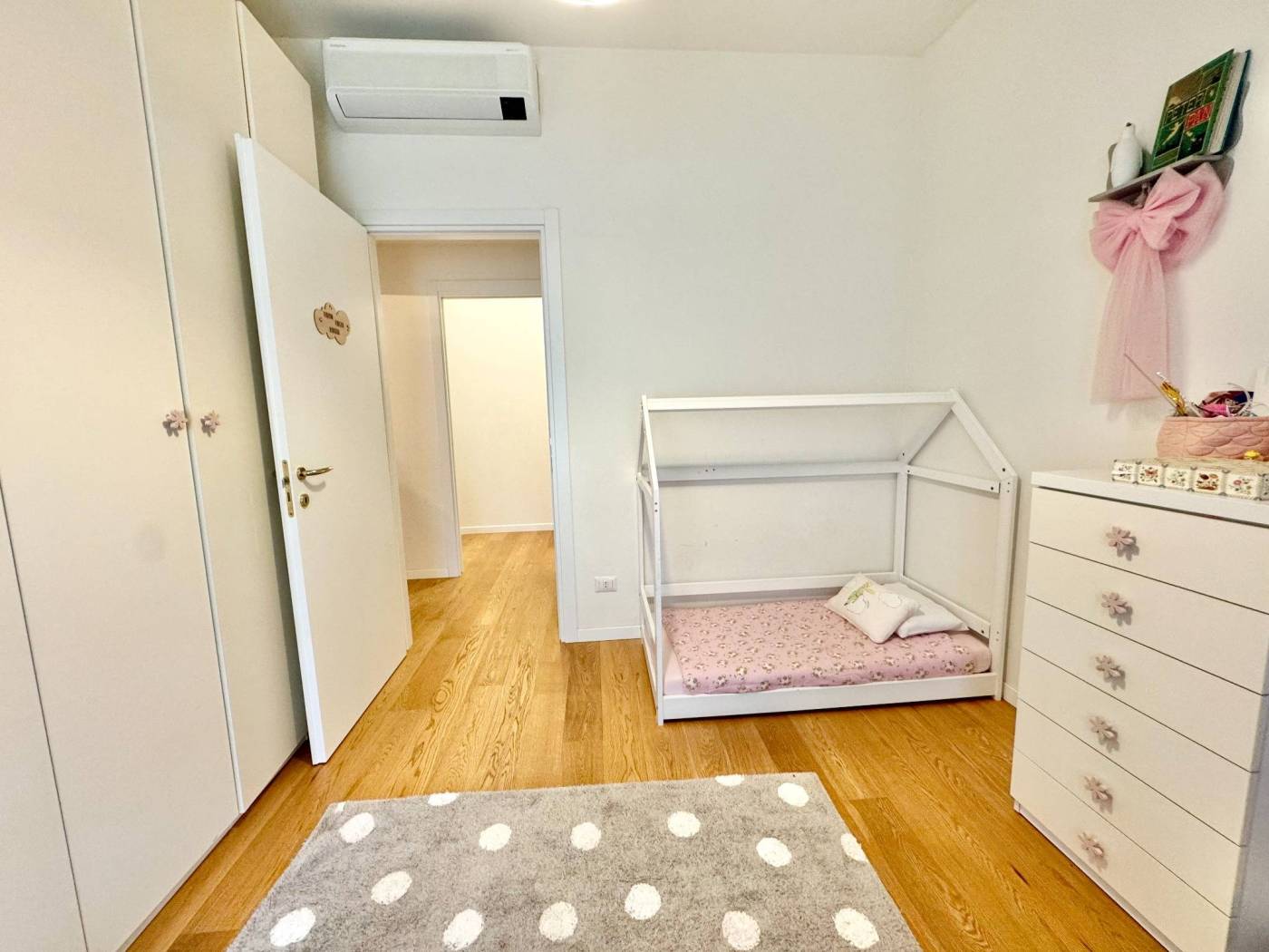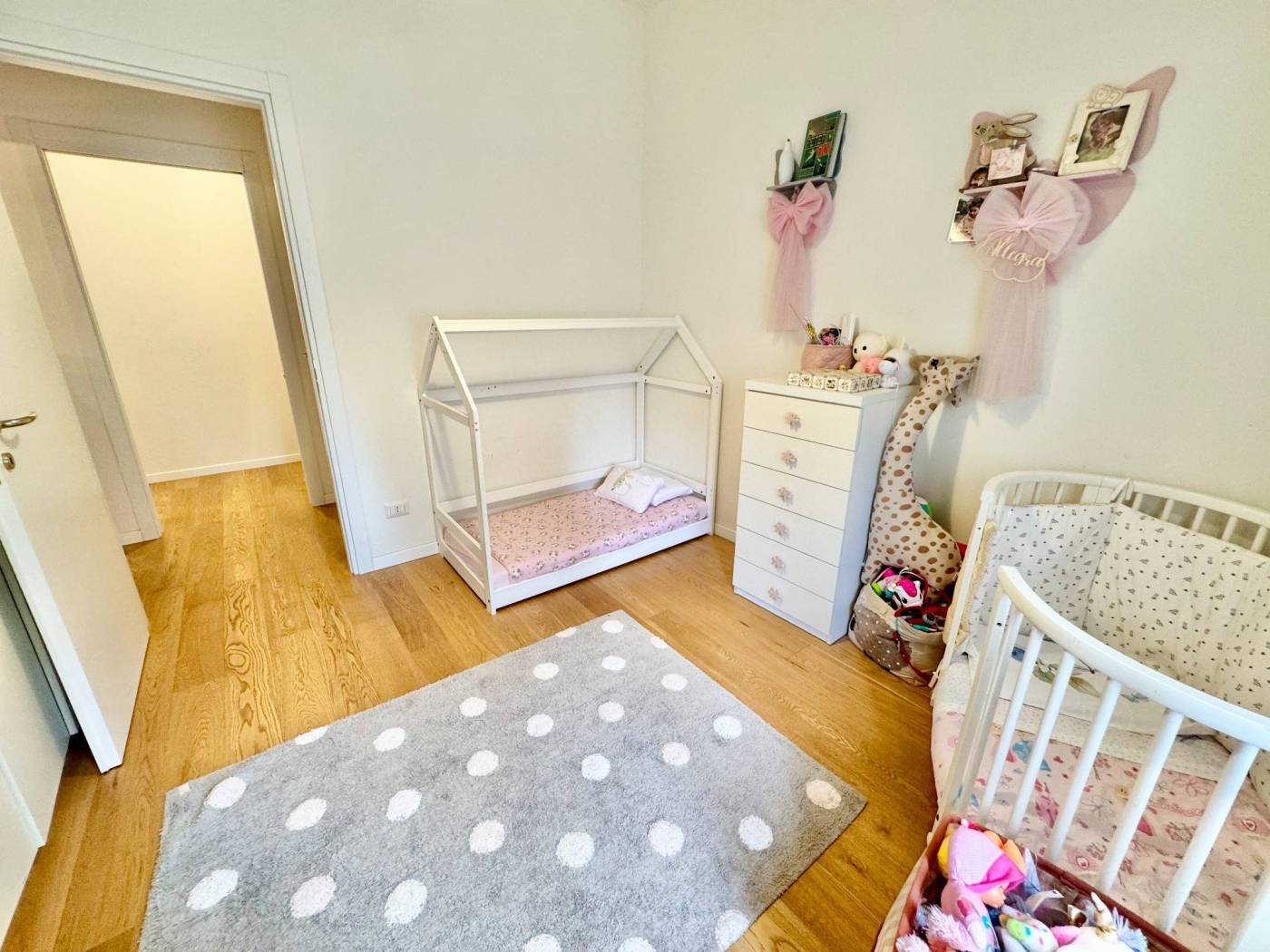 L'appartamento è composto da: ingresso, ampio soggiorno con cucina a vista e balcone, disimpegno, bagno finestrato, camera matrimoniale, cameretta e zona lavanderia.